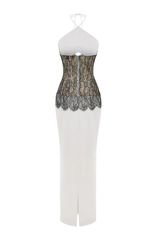 SATIN AND LACE CORSET MAXI DRESS