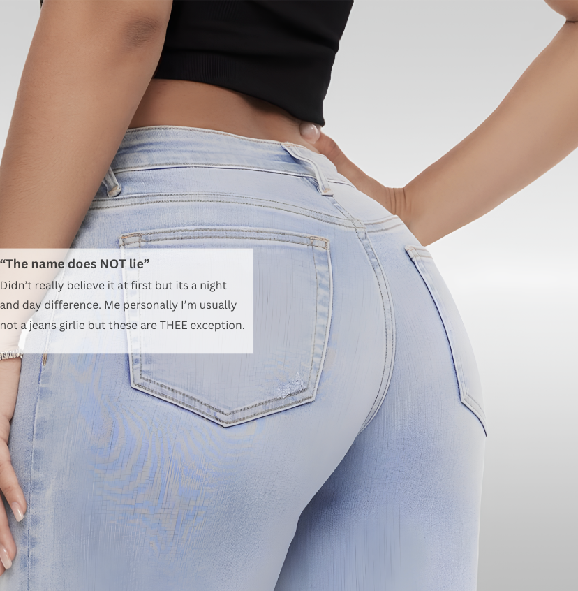 One glance tells the whole story. On the left, ordinary jeans that just sit there. On the right, our BBL Jeans that work magic by hugging every curve perfectly. No tricks, no filters – just strategic seam placement and ultra-stretch fabric that lifts and shapes while keeping you comfortable all day!