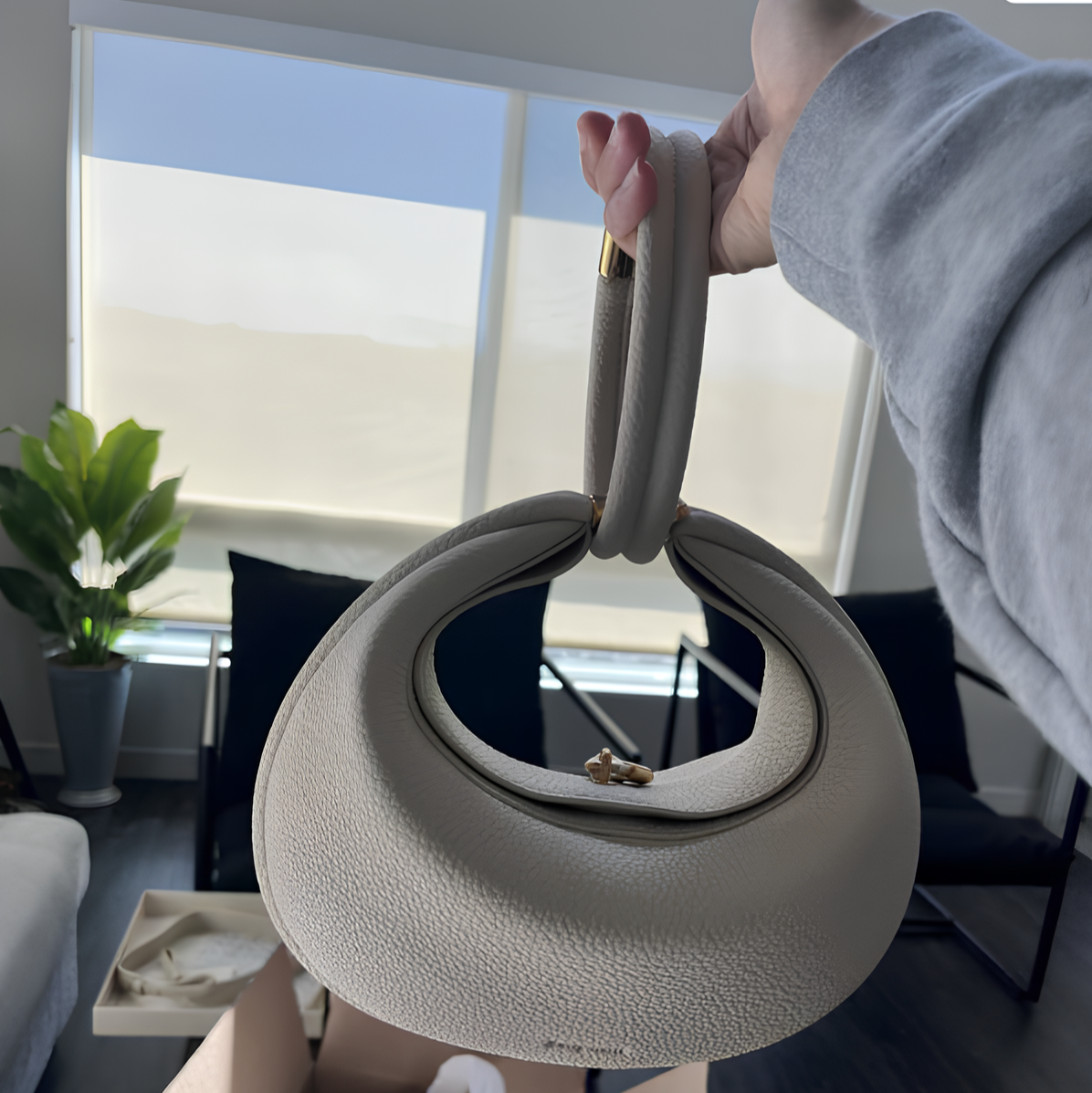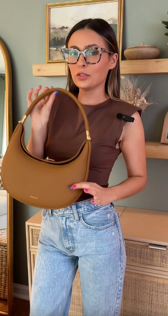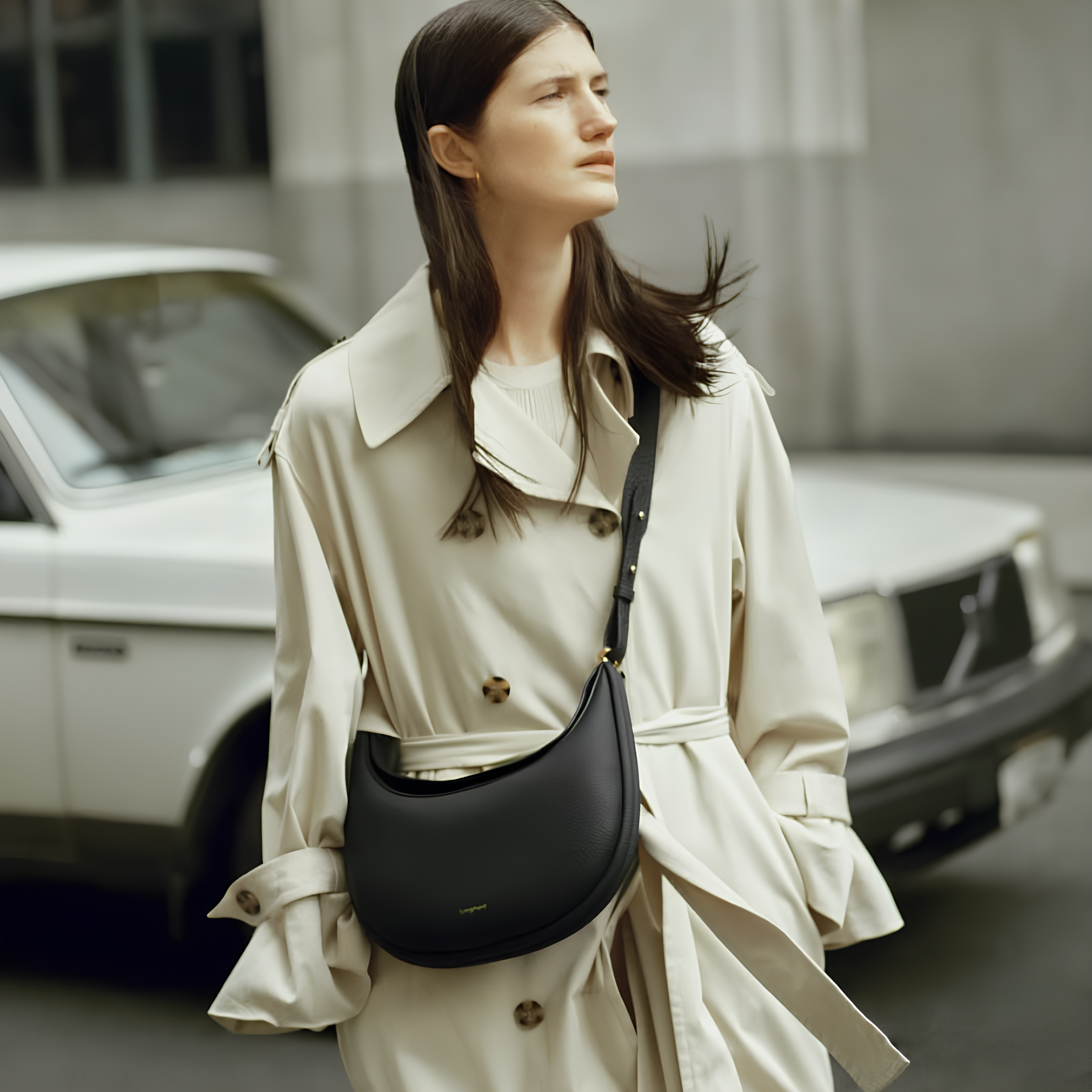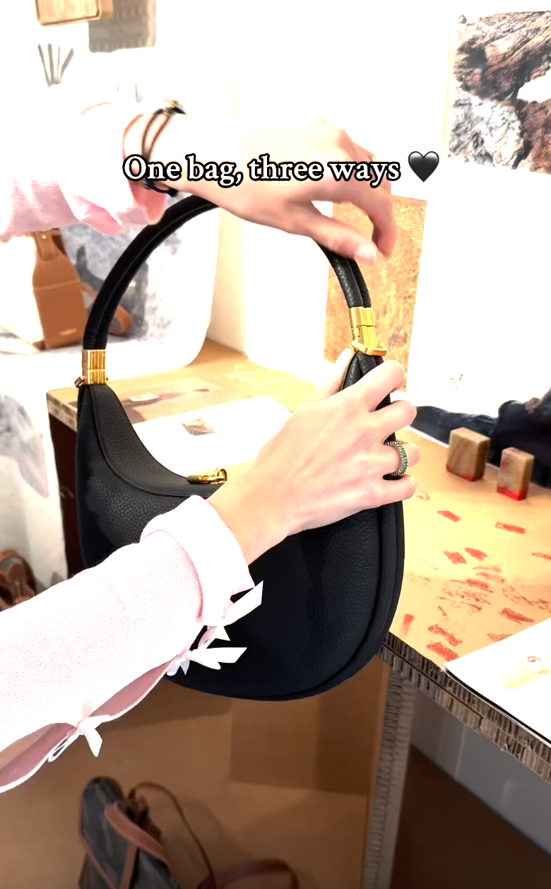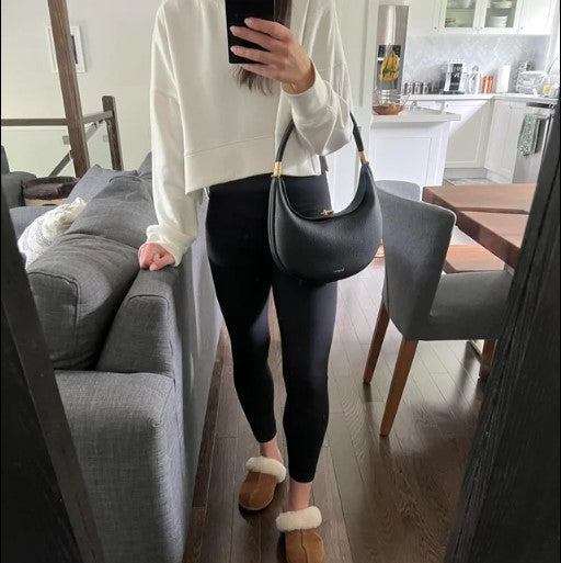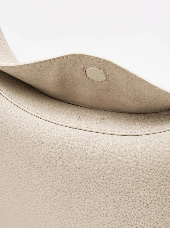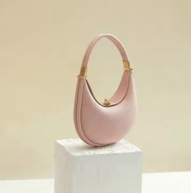 Step up your style with The Crescent Bag. Its unique crescent shape stands out while staying simple and classy. Made from soft pebbled leather with shiny gold details, this bag is as pretty as it is practical. Wear it as a crossbody, shoulder bag, or carry it by hand—however you like!