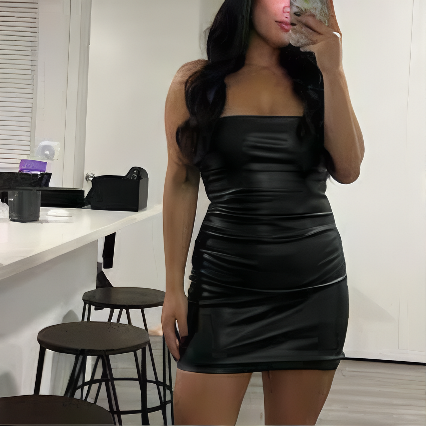 The faux leather material exudes high-end style while offering a comfortable, lightweight feel that’s perfect for all-night wear. With its minimalist yet bold design, this dress is versatile enough for a night out with friends, a dinner date, or your next party.